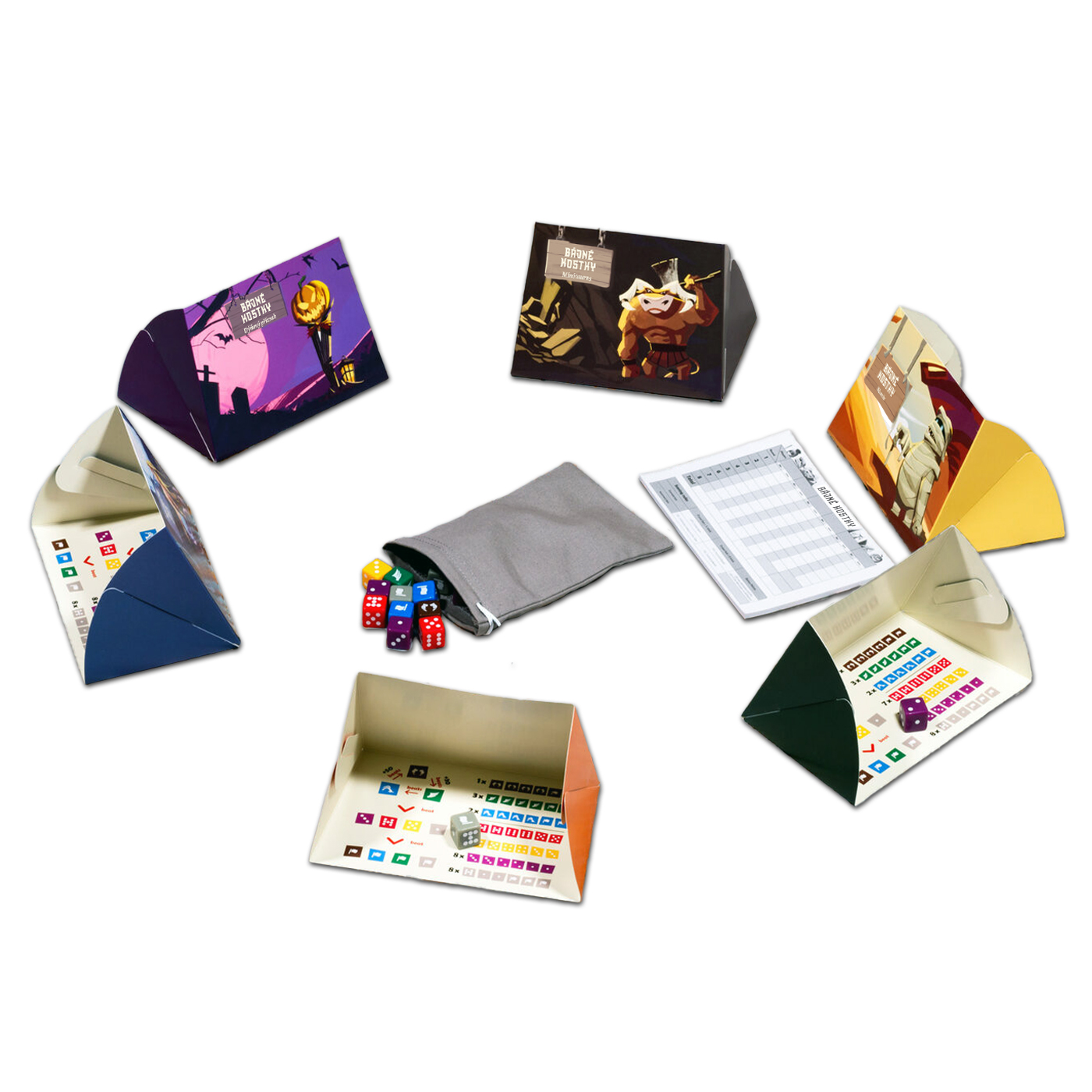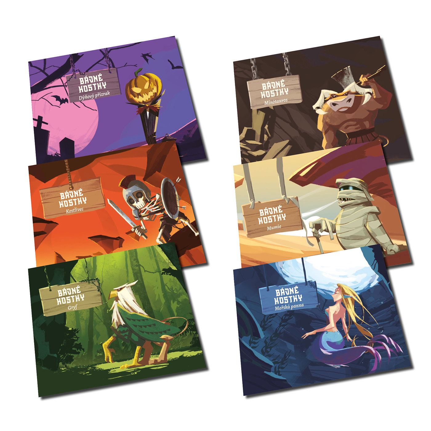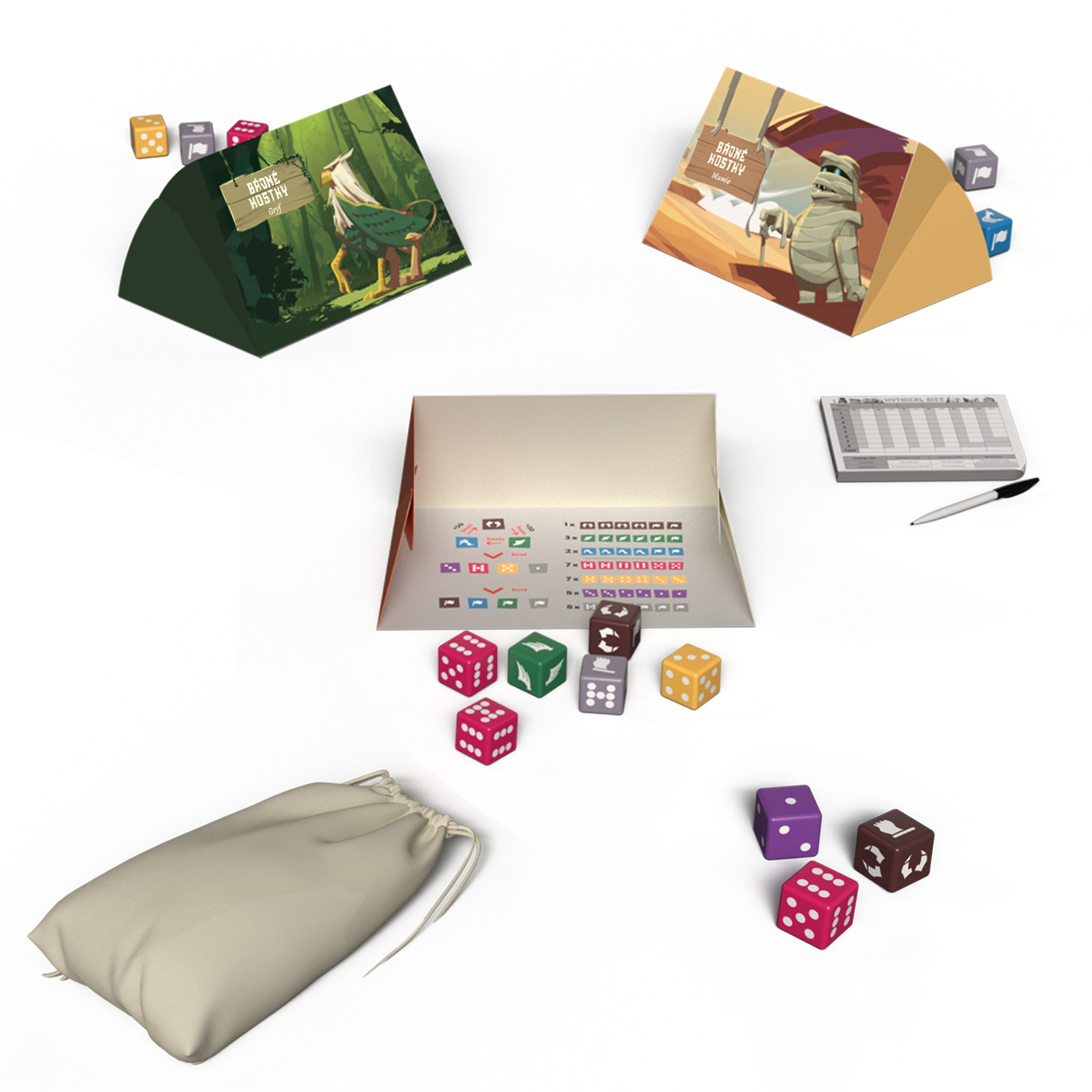 Bájné kostky jsou zábavná štychová hra s kostkami! Na začátku každého kola si hráči vylosují kostky z pytlíku, se kterými budou hrát, a posléze si vsadí, kolik uhrají štychů. Kostky mají různé barvy a různou sílu, i ty nejsilnější ale mají svoje slabiny! Hráči poté získávají body, pokud si dobře vsadili. Bájné kostky jsou rychlá hra plná zvratů, kterou si může zahrát až šest hráčů.