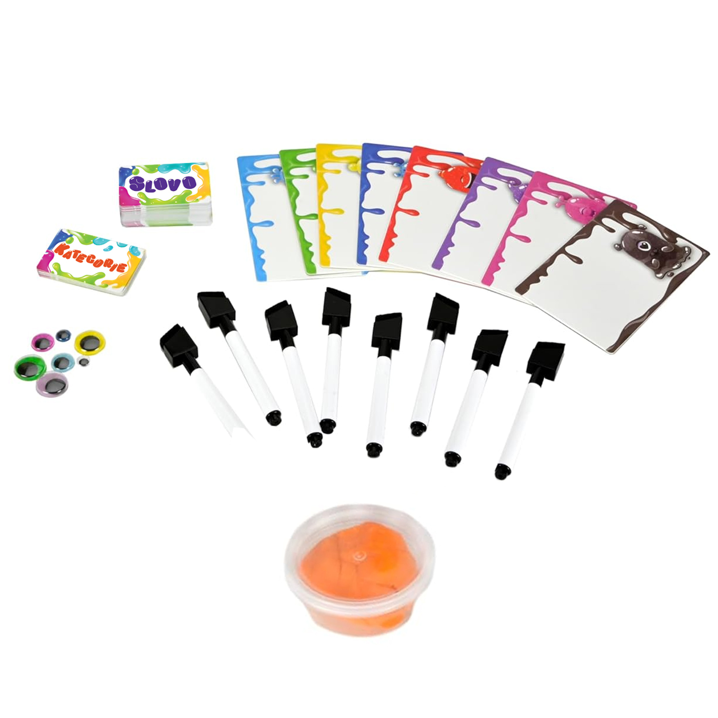 Blobíci je kooperativní hra, ve které každý z hráčů začíná sám a postupně se spolu budou spojovat na základě stejných odpovědí! A spojovat se budou doslova, na začátku hry totiž každý z nich dostane malý kousek plastelíny s očičkem - svého blobíka. A jen stejnými odpověďmi se budou moci propojit v jeden velký veleblob. Hráči v každém kole otočí kartu kategorie (například zeměpis, film či jídlo) a jeden z nich vybere jednu ze tří karet se specifickým slovem. Poté všichni napíšou na tabulku svoji asociaci a následně si svá slova porovnají. Ti, kdo budou mít stejná, si spojí své blobíky a hrají dále spolu. Cílem je pak to, aby se během sedmi kol všichni propojili v jeden velký blob.