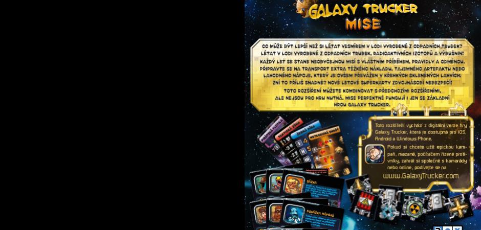 Toto rozšíření můžete kombinovat s předchozími rozšířeními, ale nejsou pro hru nutná. Mise perfektně fungují i jen se základní hrou Galaxy Trucker první edice.