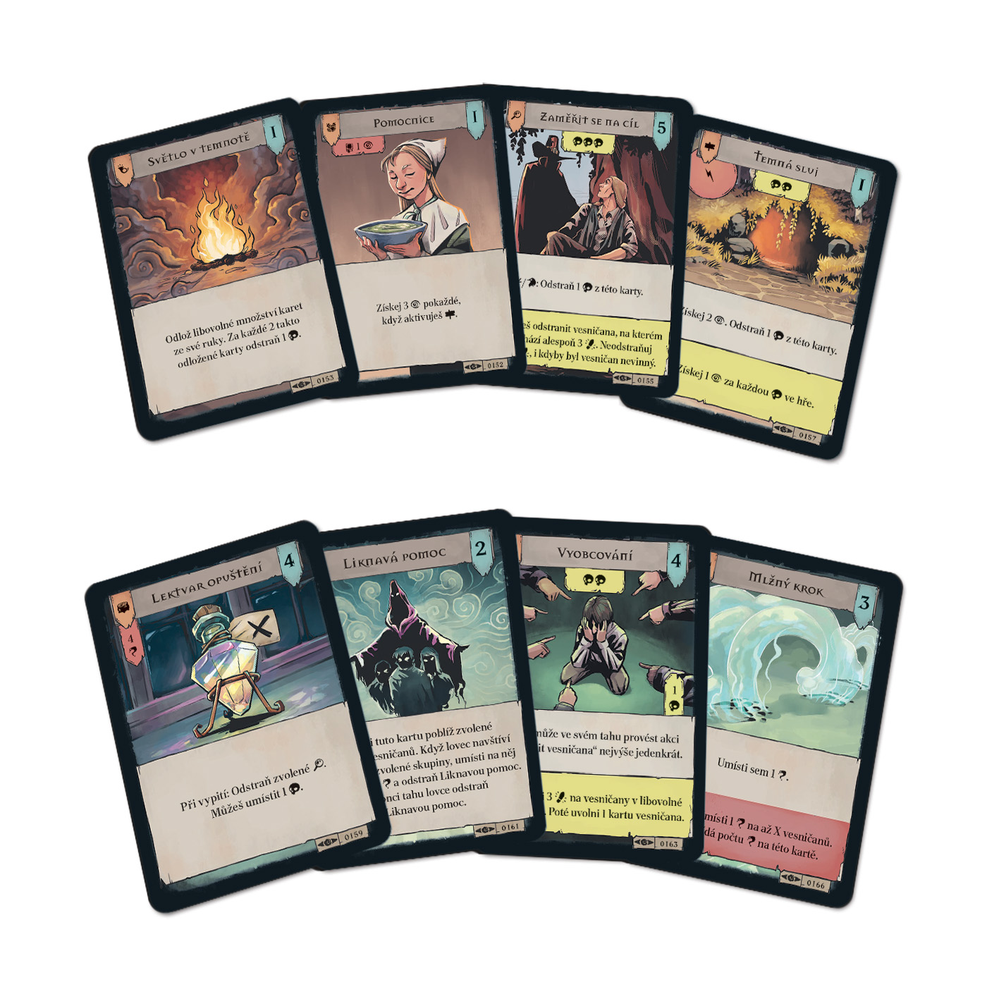 V rozšíření Skrze mlhy pro hru Kacíř: Zkáza Roanoke se hráči budou pohybovat v oparu zrádné krajiny, která prověří jejich smysly. Čarodějnice nalezne v mlhách sílu. Pro lovce čarodějnic je mlha dvousečnou zbraní: ukrývá sice jeho činy před zvědavýma očima, avšak zároveň halí do svého hávu i stopy, které tak zoufale potřebuje.Obsah:16 karet lovce16 karet čarodějnice