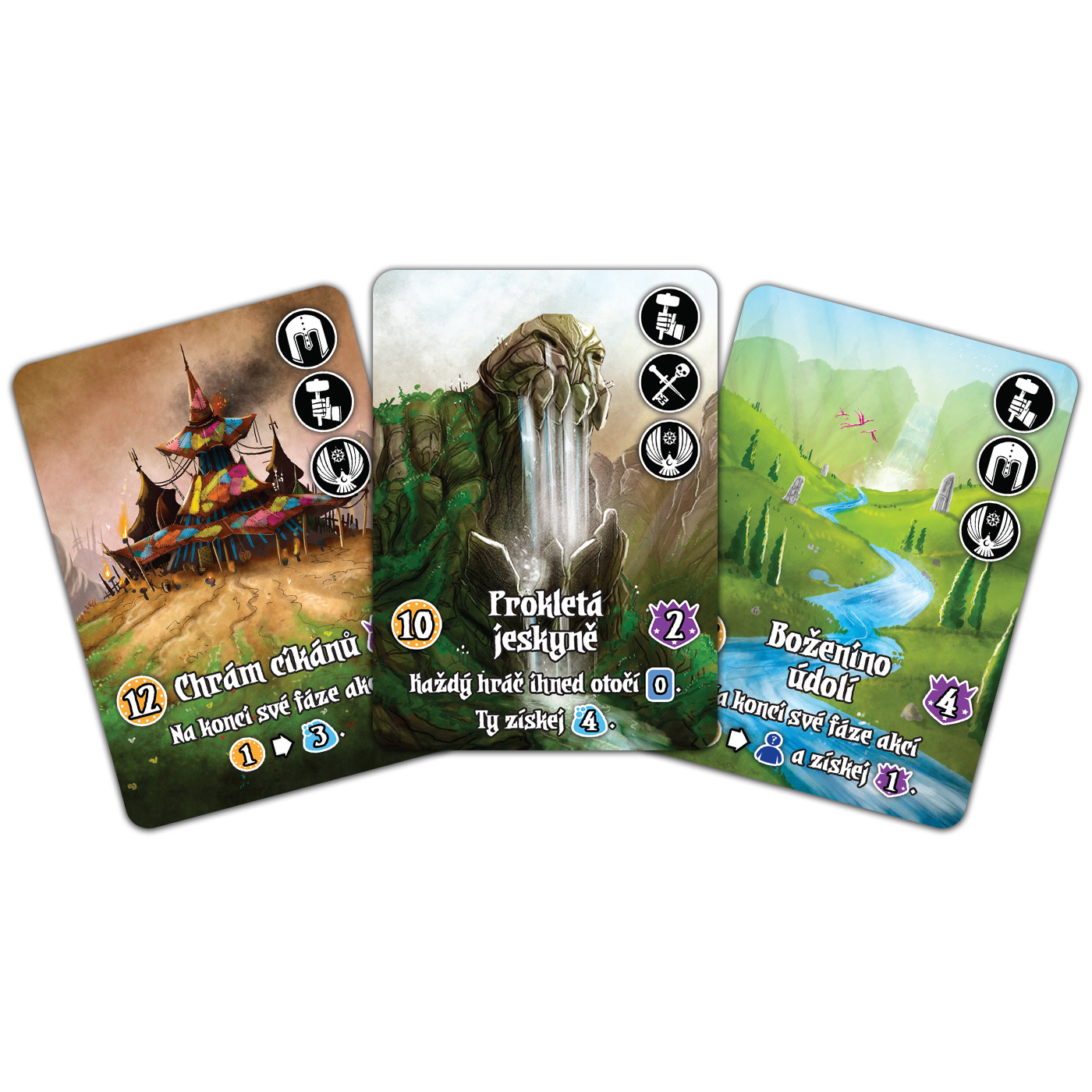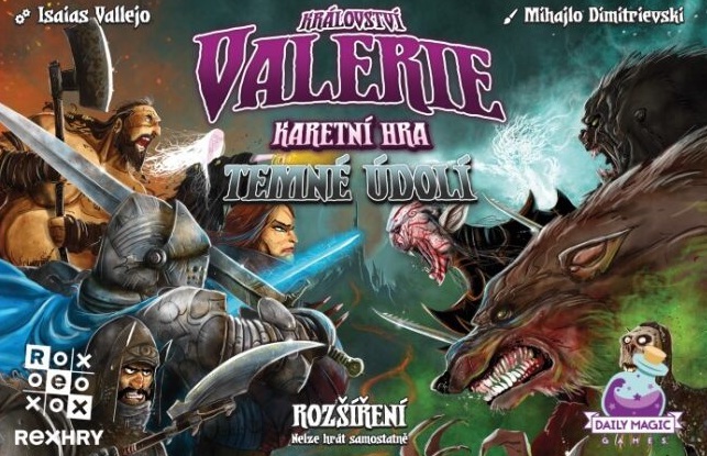 S rozšířením Temné údolí přichází do hry Království Valerie temnota! Vydáte se v něm do nekropole, stok či krypty a bojovat budete proti zombiím, vlkodlakům či upírům! Celkem vás čeká pětice nových balíčků nestvůr, celá nová sada obyvatel, kde najdete třeba vymýtačku či banditu, a také noví vévodové a panství. Nové karty můžete libovolně kombinovat jak se základní hrou Království Valerie, tak s rozšířením Plameny a mráz!