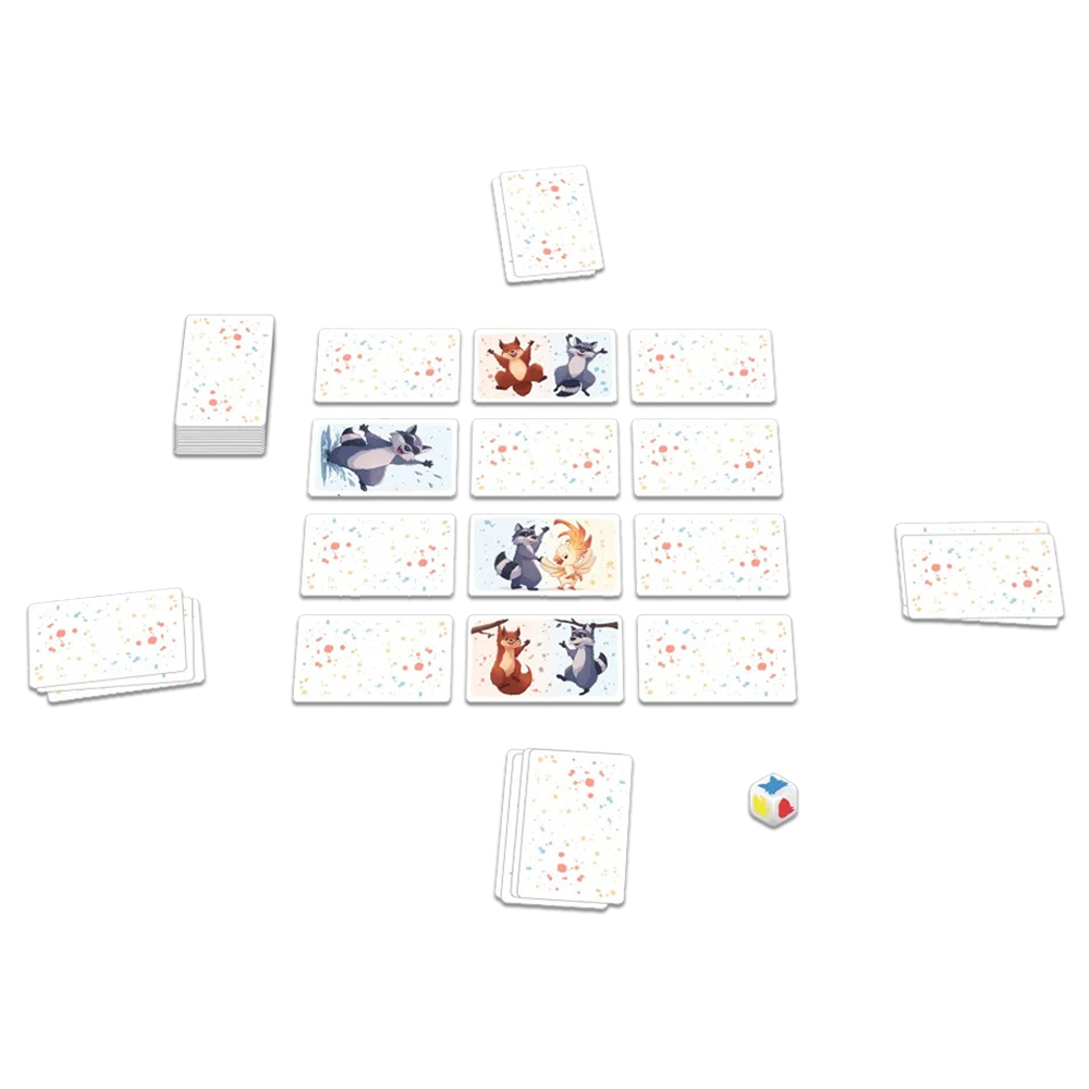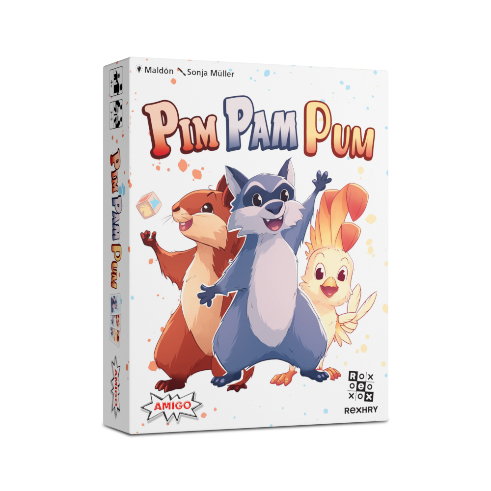 Pim Pam Pum je roztomilá zvířátková hra pro nejmenší, která procvičí především paměť! Ve svém tahu hráč hodí kostkou, na které padne jedna ze tří barev odpovídající třem různým barevným zvířátkům - papouškovi, mývalovi či veverce. Poté otočí jednu z karet, které jsou na stole rozmístěny lícem dolů a pokud najde zvířátko odpovídající barvy, může pokračovat nebo si zvířátko vzít. Pokud však na další otočené kartě daná barva není, musí vše otočit zpět! Pim Pam Pum je moc milá dětská hra, která zabaví!