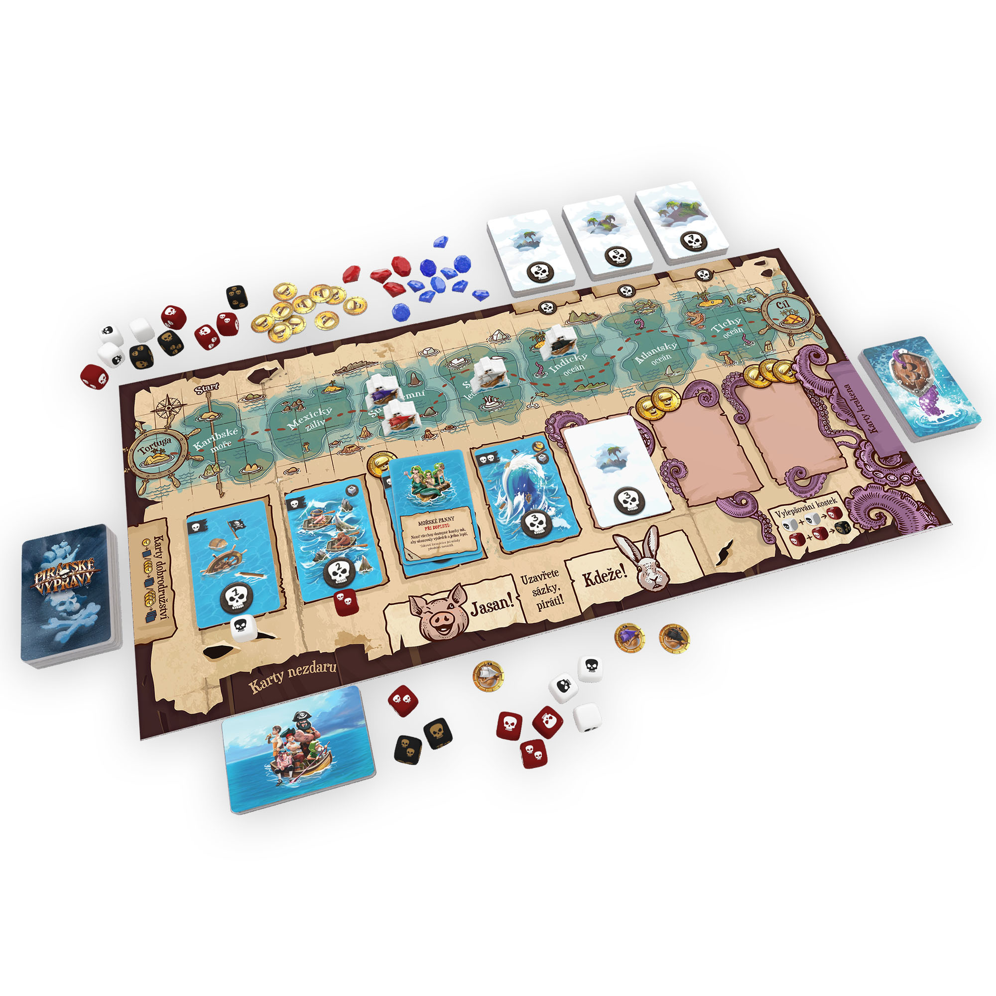 Pirátské výpravy jsou dobrodružná hra, ve které se hráči stanou pirátskými kapitány a budou se plavit po sedmi mořích. Jejich cílem bude získat co nejvíce pokladů, k čemuž budou potřebovat i trochu toho štěstí. Pomocí kostek budou překonávat nástrahy, které se jim postaví do cesty. A bude to i samotný Kraken! Hráči mohou své kostky vylepšovat a k úspěšným plavbám mohou využívat i akce na kartách. Ty neúspěšné jim pak přinesou nějaký postih. No a říkali jsme vám, že na své protivníky si můžete i vsadit? Pirátské výpravy jsou navíc krásně zpracované, v krabici najdete neoprenovou hrací podložku a pořádné drahokamy, které budete získávat jako poklady!