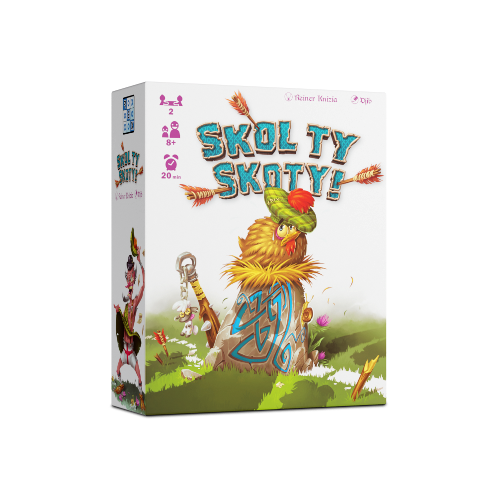 Skol ty Skoty je zábavná karetní hra pro dva, ve které budete v čele jednoho ze dvou klanů bojovat o hraniční kameny, které ohraničují vaše území. V každém tahu přiložíte jednoho ze svých Skotů a budete se snažit získat nadvládu nad jedním z kamenů tím, že vytvoříte silnou sadu karet - trojičku, postupku, barvu atd. Hra má jednoduchá pravidla, ale najdete v ní dostatek strategie. A nadto má moc pěkné ilustrace.