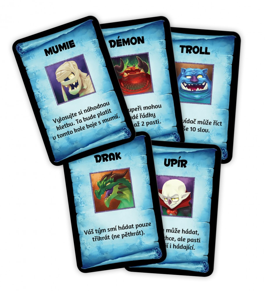 V pasti je týmová párty hra se slovy v atraktivním fantasy prostředí. Každý tým představuje skupinku dobrodruhů, která se snaží projít podzemím, dostat se k nestvůře a porazit ji jako první.